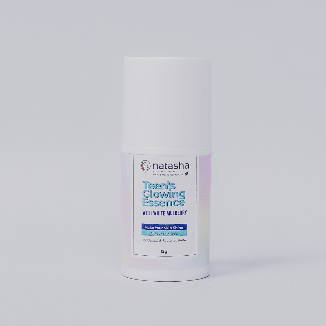 Natasha by dr Fredi Setyawan Teen’s Glowing Essence mengandug white mulberry, serta bahan botanical lainnya yang dapat membantu kulit wajah tampak lebih cerah, glowing dan lembab.